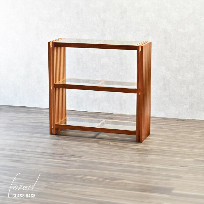 ラック 3段 ガラス棚 天然木 幅 90cm 奥行 30cm 高さ 84cm FOREST ブラウン・・・