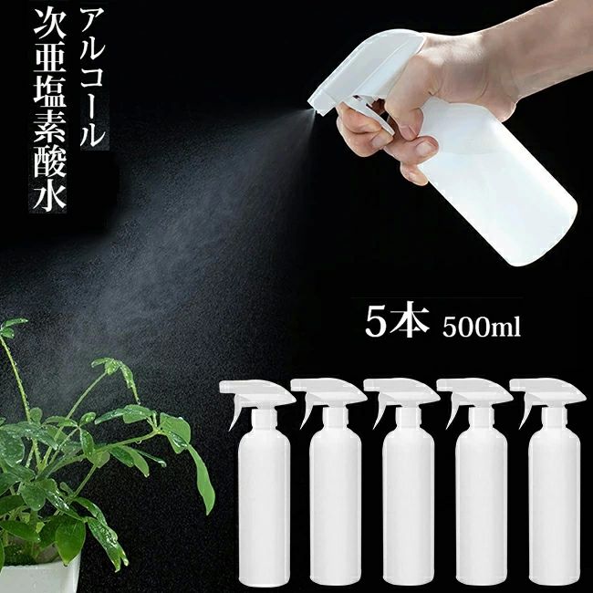 スプレーボトル アルコール対応 500ml 遮光スプレーボトル 大容量 5本セット 次亜塩素酸水 2・・・
