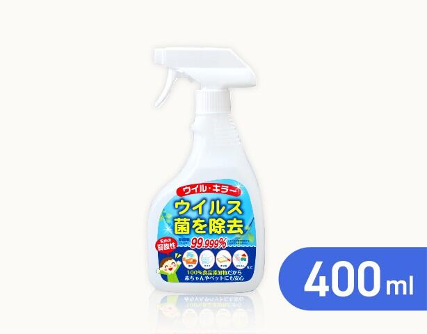 ウイル・キラースプレー 400ml 微酸性次亜塩素酸水 国内生産 除菌 消臭 ウイルス除去 除菌率9・・・