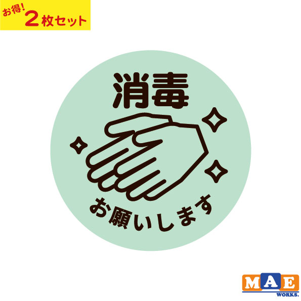 2枚セットでお得!手指の消毒を促して感染予防をお願いするステッカーです♪店舗や企業の入り口などにもおすすめです!