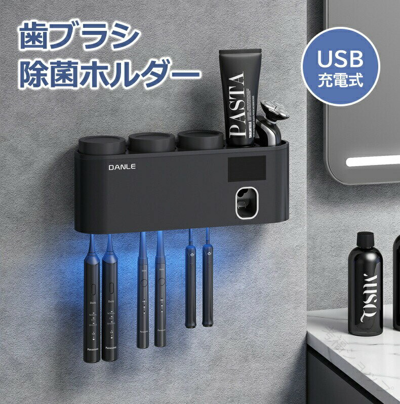 歯ブラシ6本を同時除菌 電動対応 UV消毒で清潔 ソーラー充電可能 壁掛けタイプ 便利な歯磨き粉置き場付き ひげ剃り収納も対応