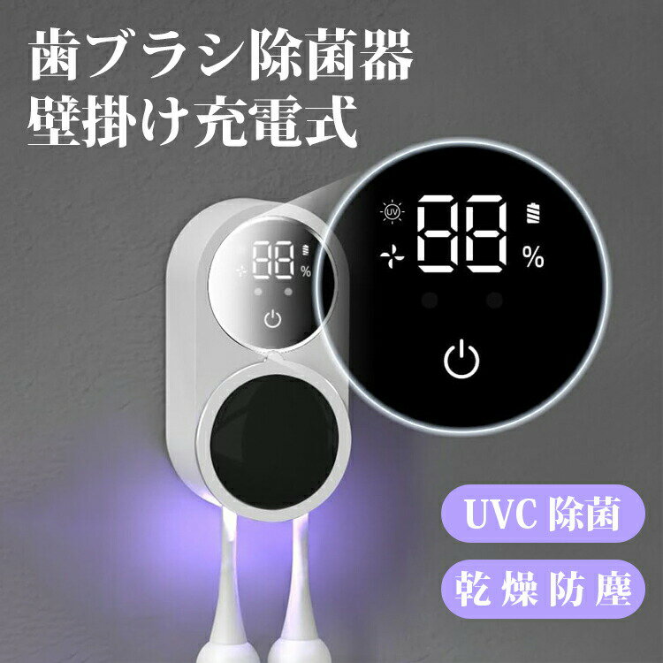 歯ブラシ除菌機 UV除菌 壁掛け式 カビ防止 歯ブラシ収納ホルダーケース 静音 UBS充電式 歯ブラシ スタンド 歯ブラシ掛け 自動電源オフ機能 収納便利 電動歯ブラシ対応 家族用 2本対応