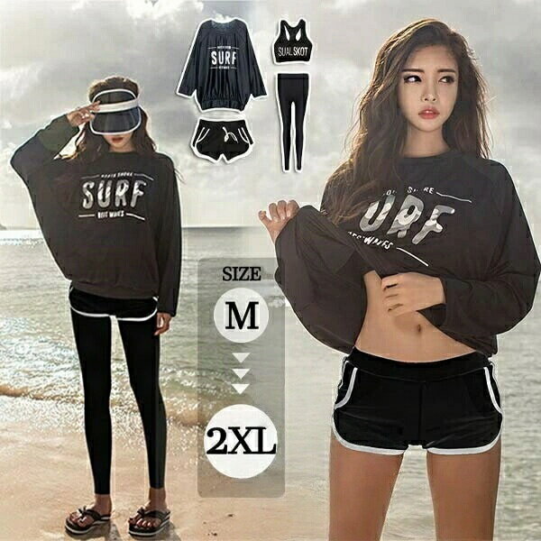 水着 レディース ラッシュガード 体型カバー 5点セット 大きいサイズ ママ水着 ぽっちゃり ラッシ・・・
