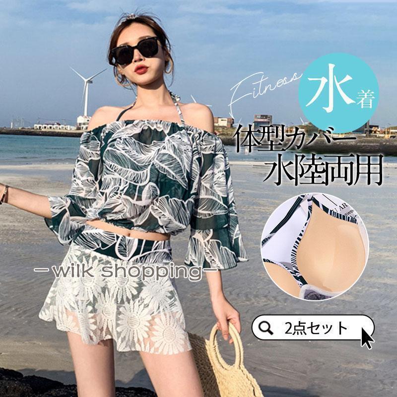水着 レディース 体型カバー水着 フィットネス水着 セパレート 3点 セットアップ 水陸両用 レディース セット