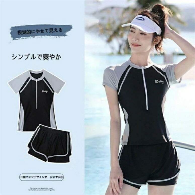 水着 レディース 体型カバー 半袖 セパレート 学生 大人 女子 セット ママ水着 女性 スプリット・・・