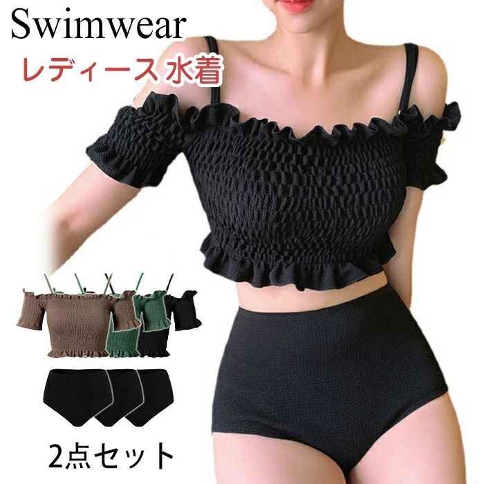お洋服みたいな水着で体型を可愛く隠す☆すっきりしたデザイン! 水着体型カバー オフショル 水着ビキニ ママ水着 短パン ショーパン ワイヤービキニ セパレート 海 プール ビーチ
