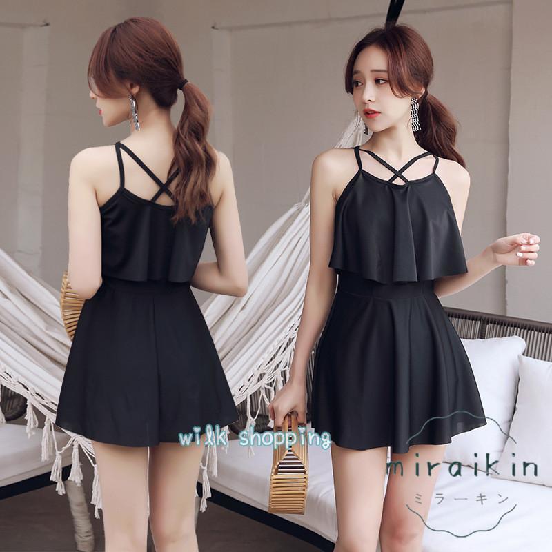 女性用水着 オールインワン 送料無料 水着 パッド付き 2点セット ミズギ 水着 海水浴 韓国風 小・・・