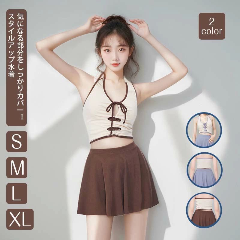 水着 レディース 体型カバー 韓国 お洒落 水陸両用 レディース 海水浴 お洒落 オトナ女子 体型カバー セパレート 太もも