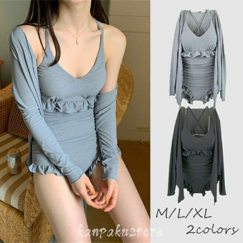 【送料無料】水着ワンピース 2点セット 韓国風 水着 小胸 レディース おしゃれ パッド付き 温泉 ・・・