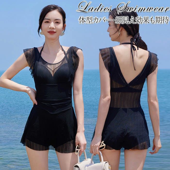 ワンピース 水着 レディース 体型カバー水着 20代 30代 40代 50代 ママ水着 オトナ女子 露出控えめ セクシー 黒 オールインワン フリル 大きいサイズ 無地 シン