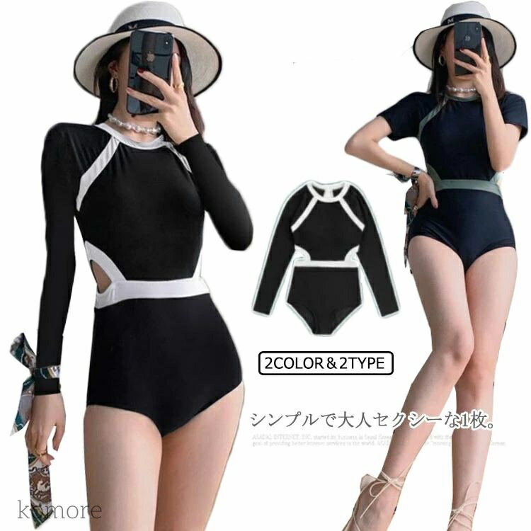 ミズギ パッド付き 黒白 大人 レディース 水着 長袖 みずぎ オトナ女子 海 背中見せ ミセス スイミング カバー プール 綺麗め シンプル 婦人 上品 夏 リゾート