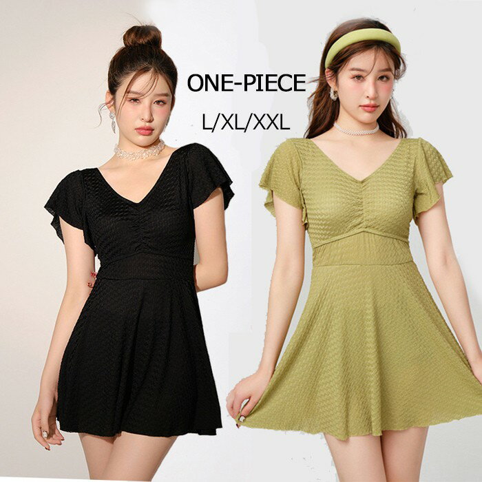 ♪ナチュラルに体型カバー◎ ワンピース水着 みずぎ スイムウェア 女性 お洒落 可愛い ガーリー ビッグサイズ ウエストマーク ウエストドレープ