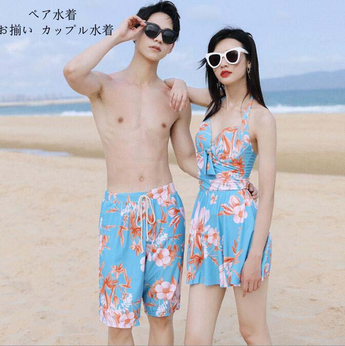 ペア水着 ミズギ 大人 カップル水着 2点セット サーフパンツ 水着 送料無料 女性 パッド付き ビ・・・