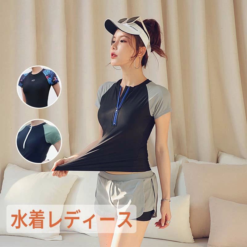 水着 レディース 体型カバー セパレート ラッシュガード セット フィットネス ラッシュガード 女の子 ショートパンツ オトナ女子 露出控えめ 大人 可愛い かわいい 20代 30代