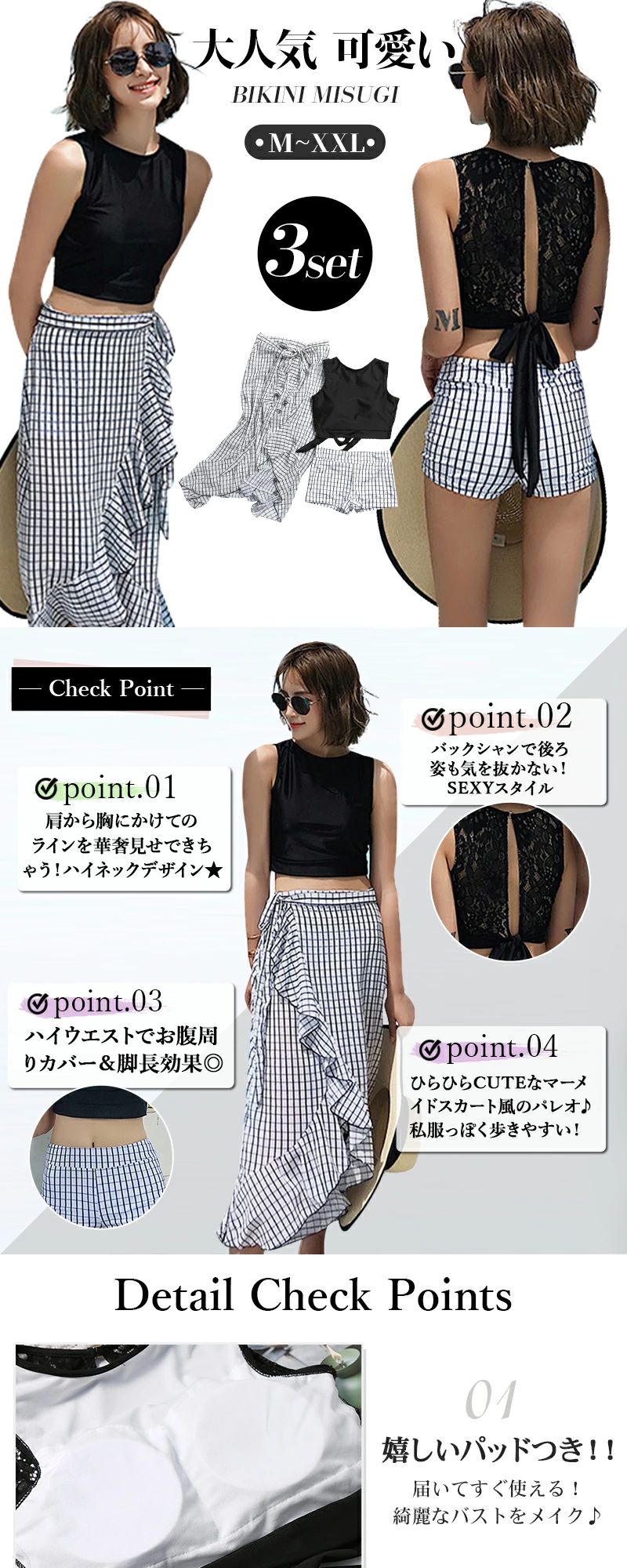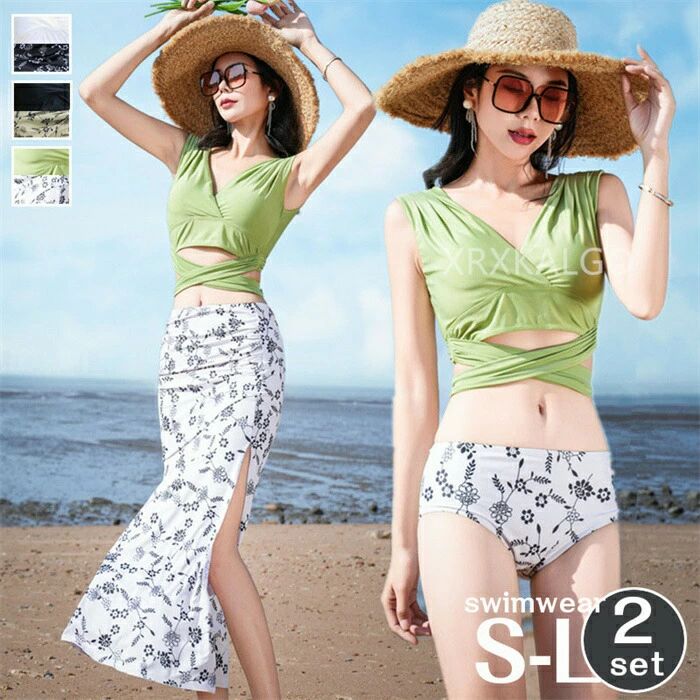 水着 レディース 体型カバー セパレート 盛れる 可愛い 3点セット 韓国 エレガント セットアップ・・・