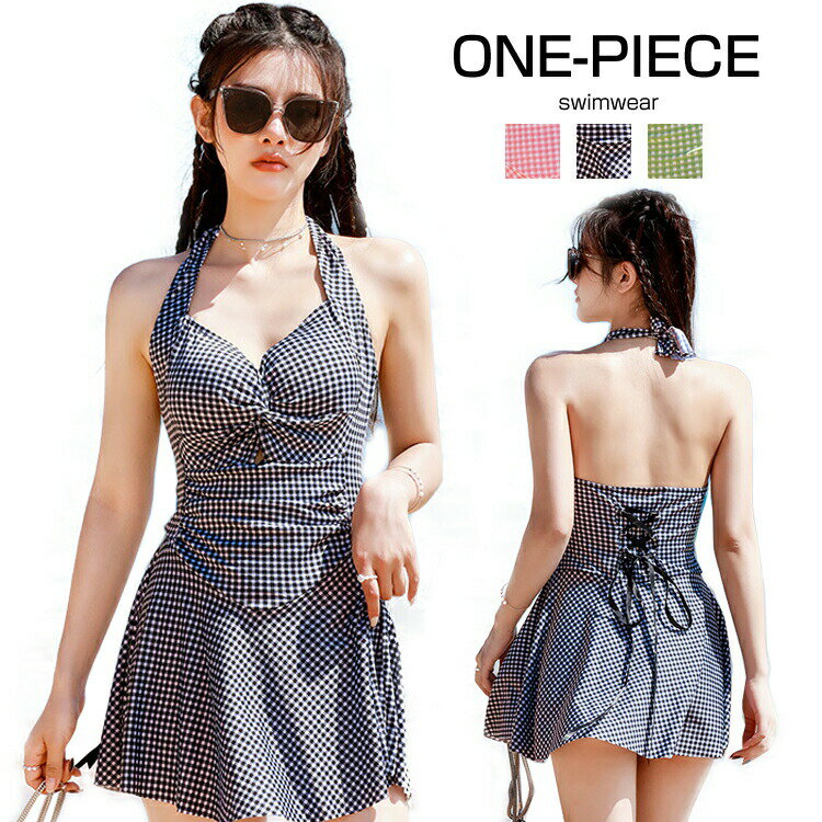 水着 レディース ビキニ ワンピース ママ水着 20代 30代 40代 オトナ女子 チェック柄 シン・・・