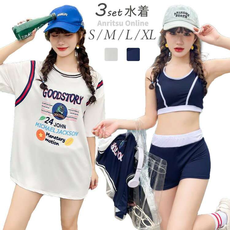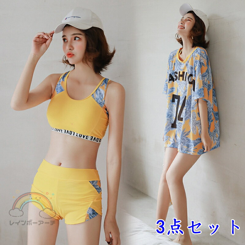 レディース 体型カバー 韓国風 露出控え 中学生 高校生 大学生 大きいサイズ かわいい 3点セット・・・