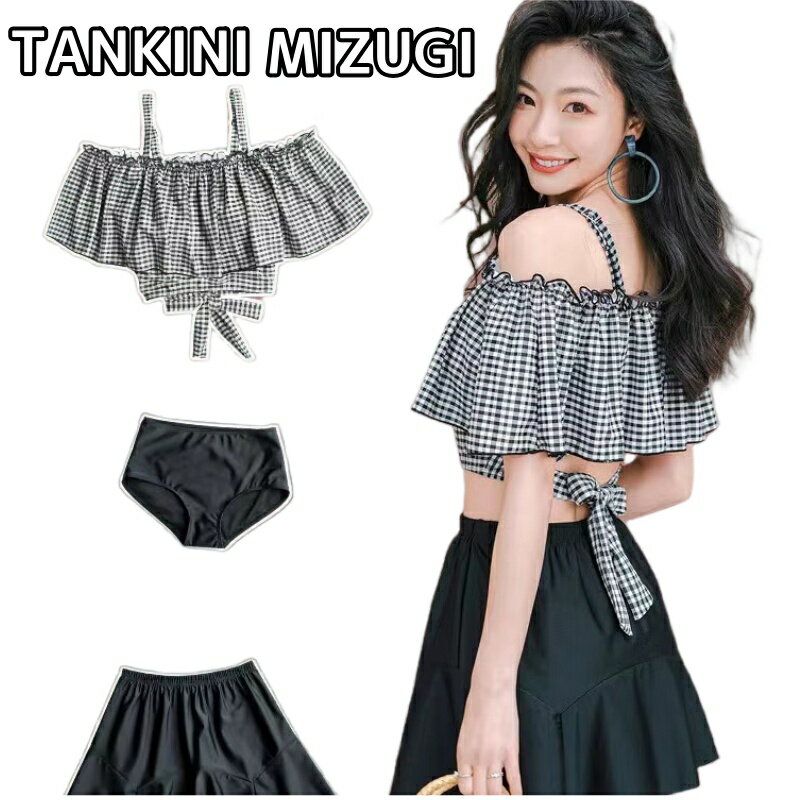 水着 レディース 体型カバー 可愛い 小胸 水着 韓国 水着 タンキニ 水着 3点セット タンキニ ・・・