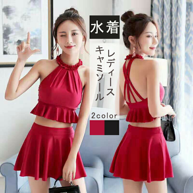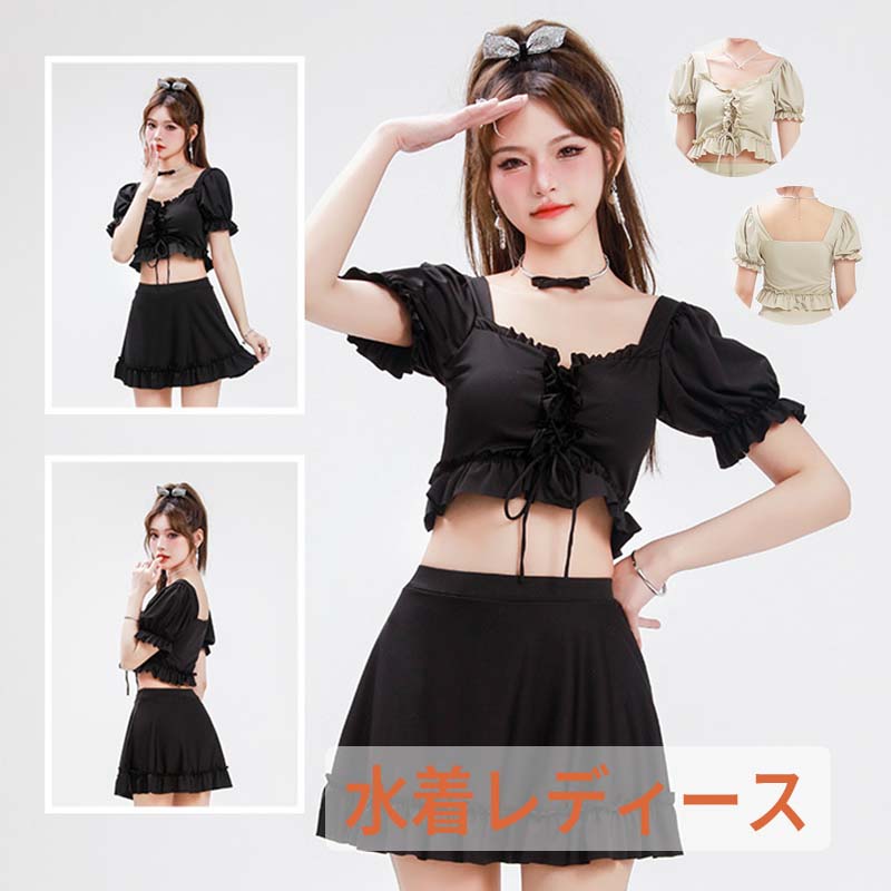 送料無料 水着 可愛い タンキニ セパレート 3点セット スカート レディース 露出控えめ 体型カバー 韓国ファッション おしゃれ