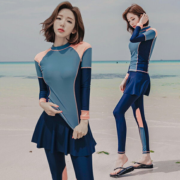 【送料無料】水着 体型カバー レディース/メンズ 4点セット ミズギ オシャレ 韓国風 パッド付き ・・・