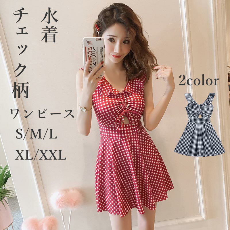 水着 ビキニ レディース ワンピース 体型カバー オトナ女子 女性用 チェク柄 シンプル カジュアル おしゃれ オトナ 谷間メイク バスト 盛れる かわいい セパレート フリルスカート