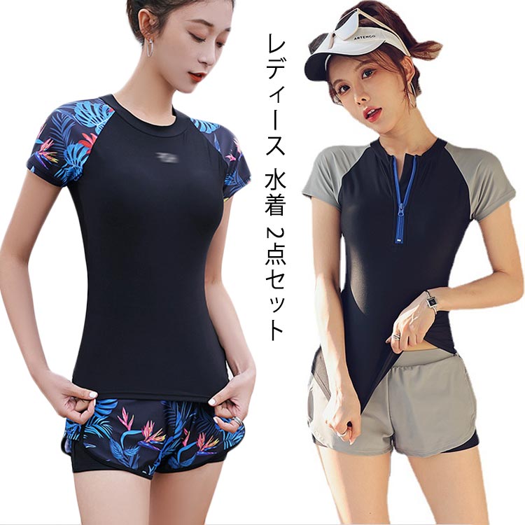 水着 レディース ワンピース水着 体型カバー セパレート ラッシュガード オトナ女子 セクシー セット フィットネス ラッシュガード 女の子 ショートパンツ オトナ女子 露出控えめ 大人
