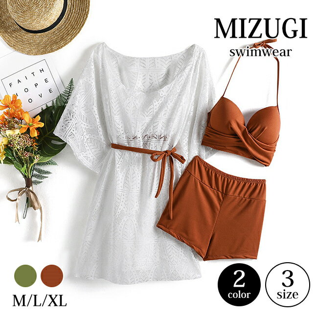 水着 レディース ワンピース ビキニ 3点セット ブラジャー ハーフパンツ 体型カバー ハイウエスト・・・