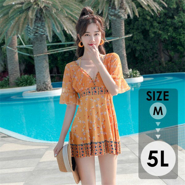 ワンピース水着 リゾート 沖縄 レディース 母親 大きいサイズ 韓国 半袖 痩せ見え 体型カバー 温・・・