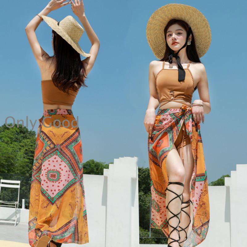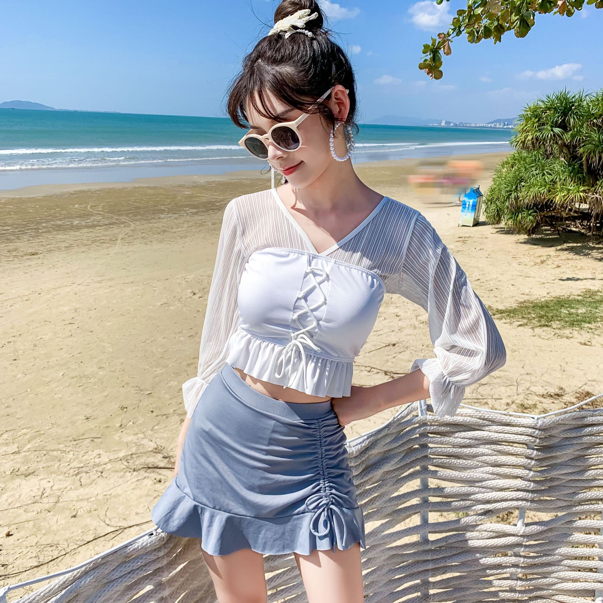 水着 レディース 体型カバー 韓国 お洒落 水陸両用 レディース 海水浴 お洒落 オトナ女子 体型カバー セパレート 太もも