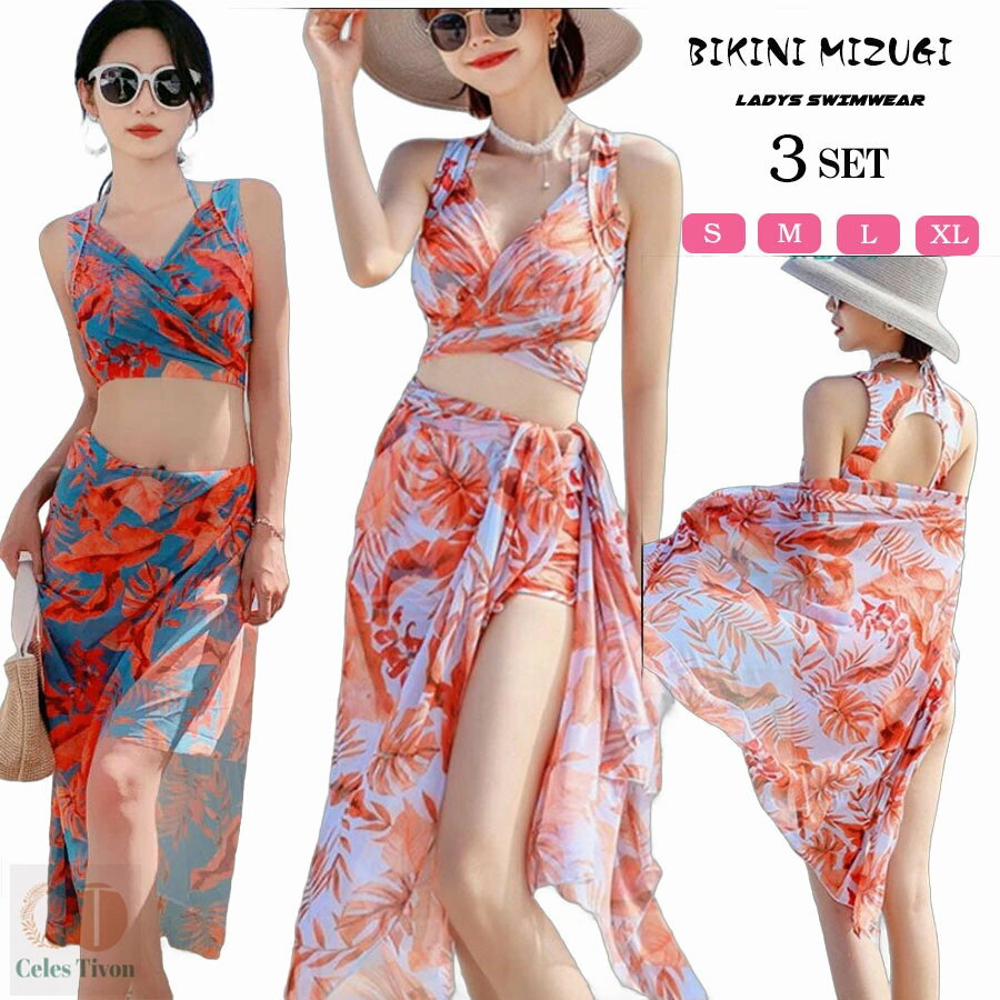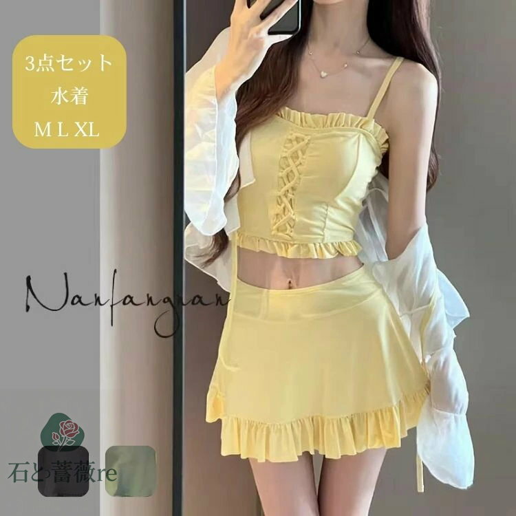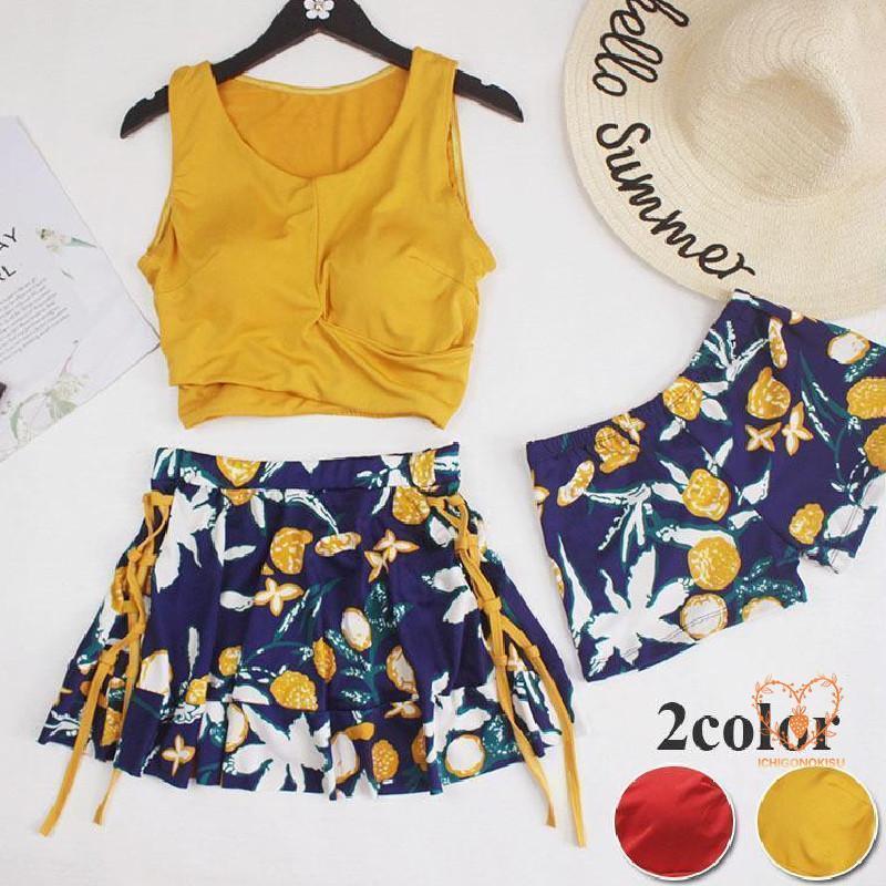 痩せ見え かわいい 体型カバー リゾート水着 新型水着 3点セット