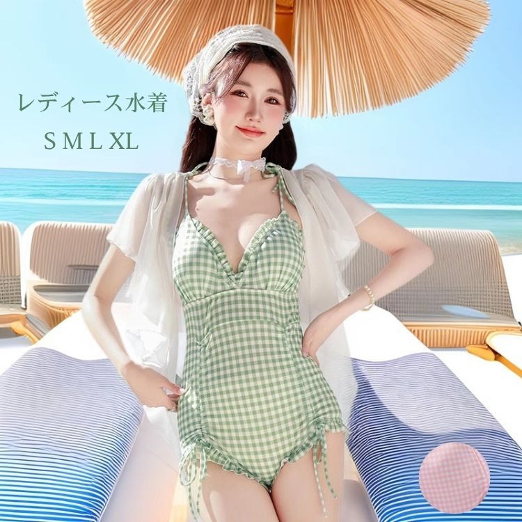 グリーン ピンク 水着 チェック柄 レディース 体型カバー 韓国 安い 水着 おしゃれ かわいい ギ・・・