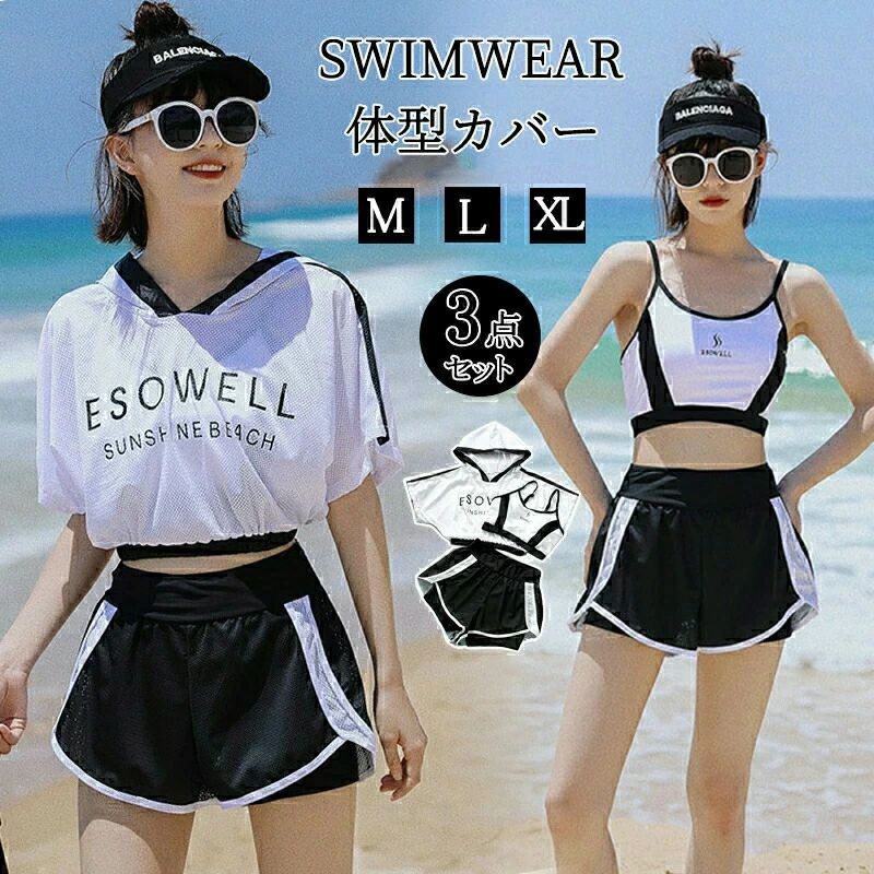 水着 レディース 体型カバー 3点セット 中学生 高校生 レディース 韓国 露出控え 大学生 女の子・・・