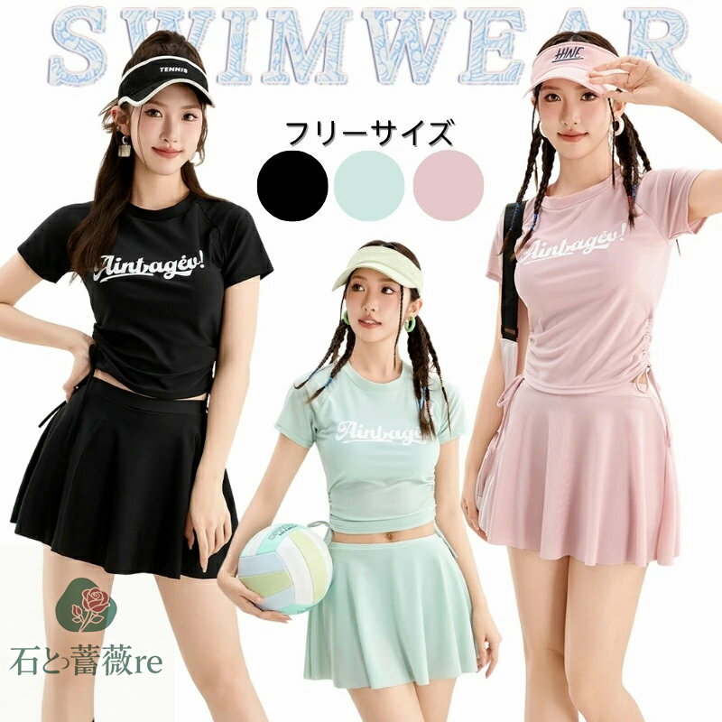 露出控えめ 水着 レディース 体型カバー水着 ビキニ スカート ダンス 20代 30代 40代 スウェット オトナ女子 無地 バックシャン