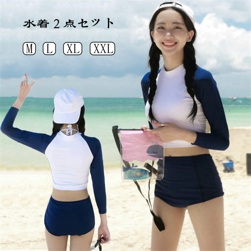 体型カバー水着 水陸両用 女性 大人 レディース水着ラッシュガードセット S M M
