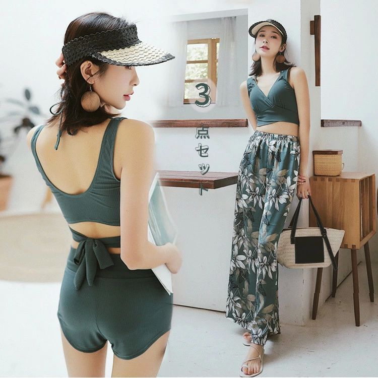 プ 海 みずぎ バンドゥ 韓国 ボタニカル 3点セット ロングパンツ セパレート タンキニ レディー・・・