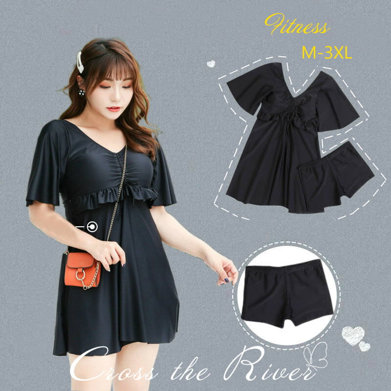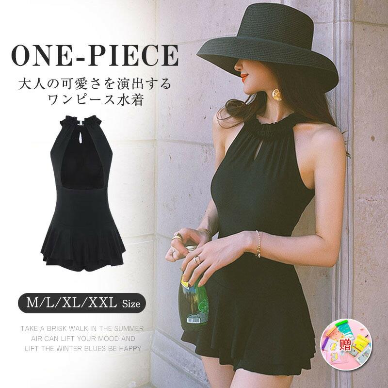 体型カバー水着 フリル フェミニン シンプル おしゃれ かわいい 大人 女性用 黒 リゾート ナイトプール ワイヤー プール 海 ビーチ 水遊び