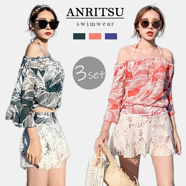ビキニ 体型カバー 可愛い 写真撮り 水着 レディース 可愛い 3点セット 体型カバー セパレート ・・・