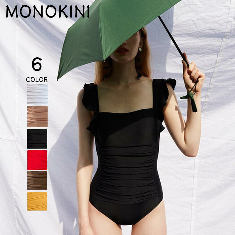 送料無料 レディース 水着 モノキニ 痩せて 見える 水着 フリル水着 水着 体型カバー ビキニ 人・・・