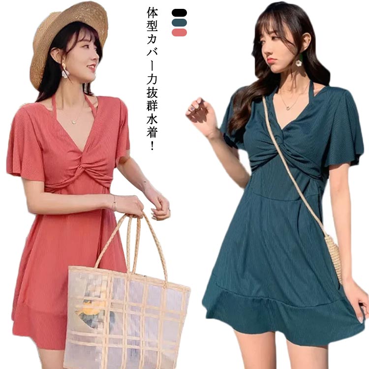 水着 レディース 体型カバー 韓国 お洒落 水陸両用 レディース 海水浴 お洒落 オトナ女子 体型カバー セパレート 太もも