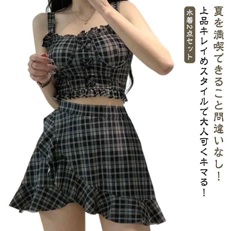 水着 レディース 体型カバー 小胸 2点セット 上下セット 可愛い バックシャン お洒落 可愛い 水着露出控えめ ママ水着 20代 30代 40代