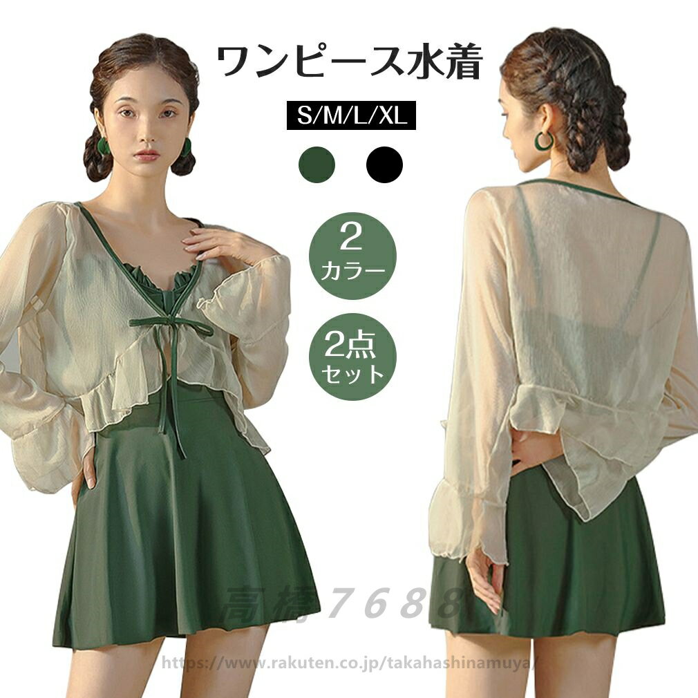 【2点セット】 水着 ワンピース レディース オールインワン 体型カバー水着 20代 30代 40代・・・