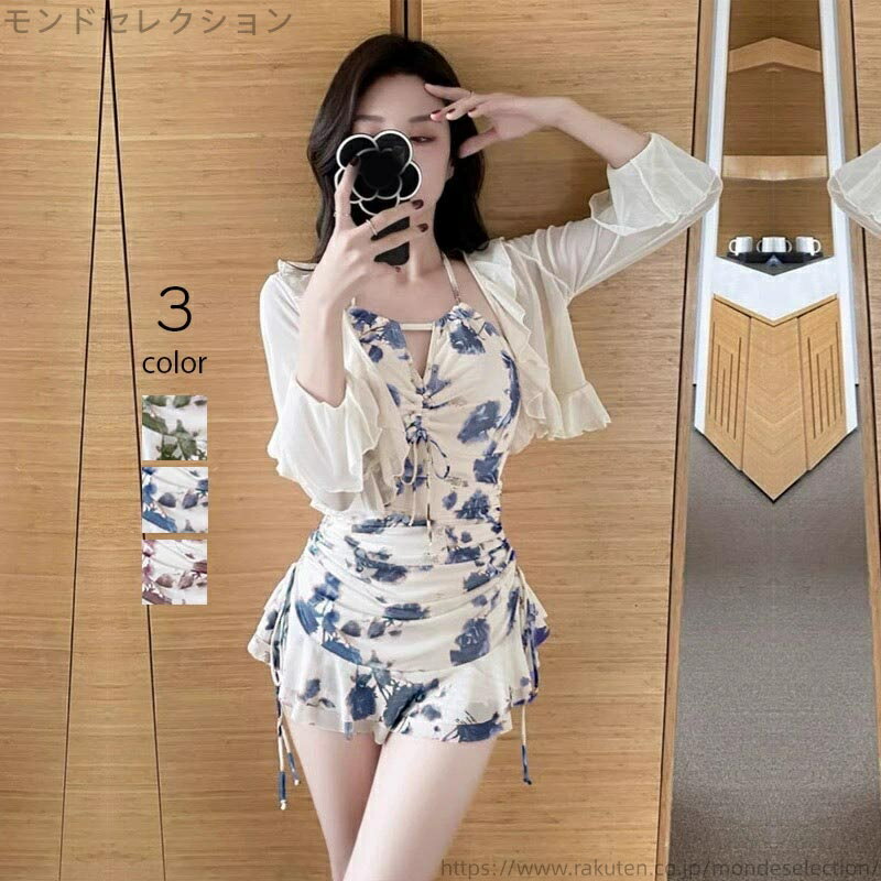 水着 2点セット レディース ワンピース シアーボレロ 花柄 オールインワン 体型カバー おしゃれ ・・・