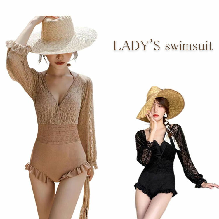 水着 レディース ワンピース オールインワン 体型カバー 小胸 パッド付き ワイヤーあり レース ビ・・・