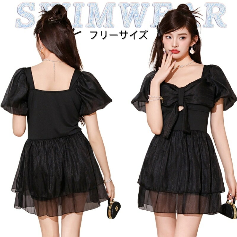 みずぎ 水着 ワンピース レディース 可愛い オールインワン 小胸 胸盛れる 体型カバー ふんわり袖・・・