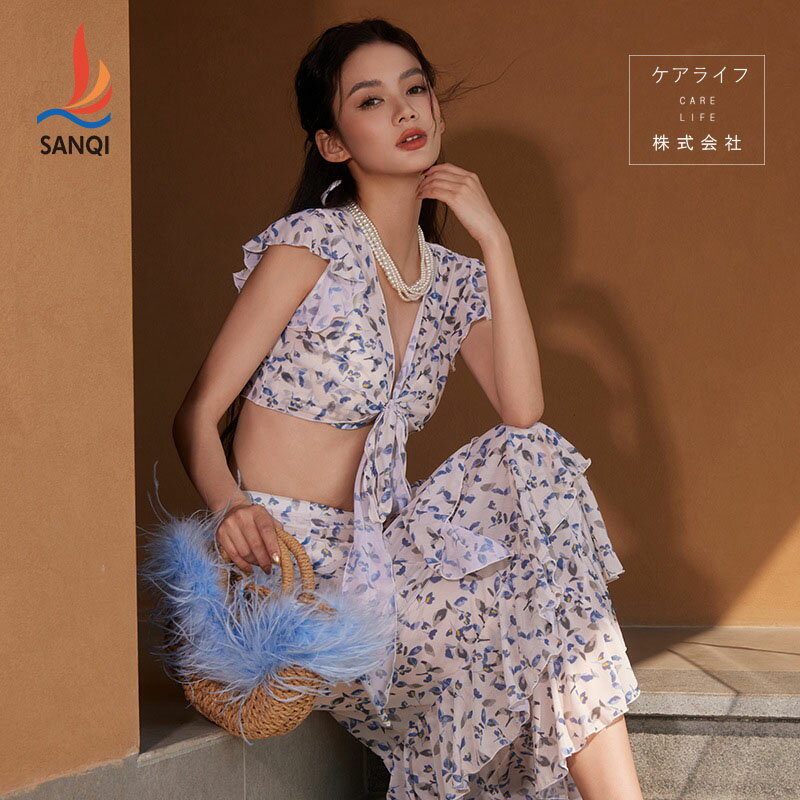 【3点セットビキニ水着】花柄ビキニ タンキニ上下セット レディース ショートパンツ 体型カバー水着 ・・・