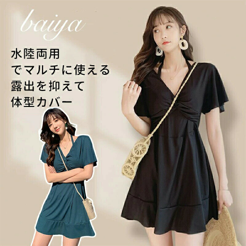 水着 レディース 体型カバー水着 着?せ 水陸両用 ワンピース 体型カバー 露出控えめ 半袖 スカー・・・