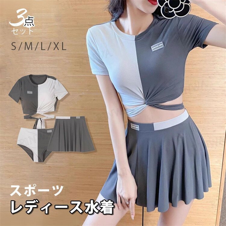 水着 3点セット 高校生 中学生 大学生 レディース 体型カバー 韓国 露出控え 女の子 大きいサイ・・・