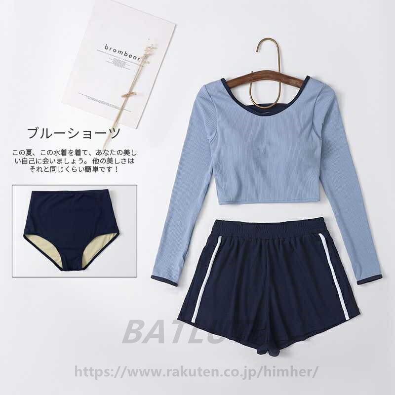 ワンピース水着 長袖 2点セット 体型カバー ビキニ 水着 レディース 大きいサイズ オトナ女子 太もも カバーアップ セクシー ビーチ 小胸 盛れる スクール ショートパンツ バックシャ