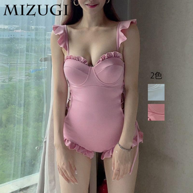 送料無料 水着 パッド付き 2点セット ミズギ 水着 海水浴 韓国風 小胸 レディース 美胸 女性用・・・