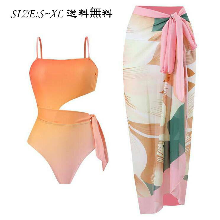 パレオ付き 3点セット水着 体型カバー タンキニ水着 ワンピース水着
